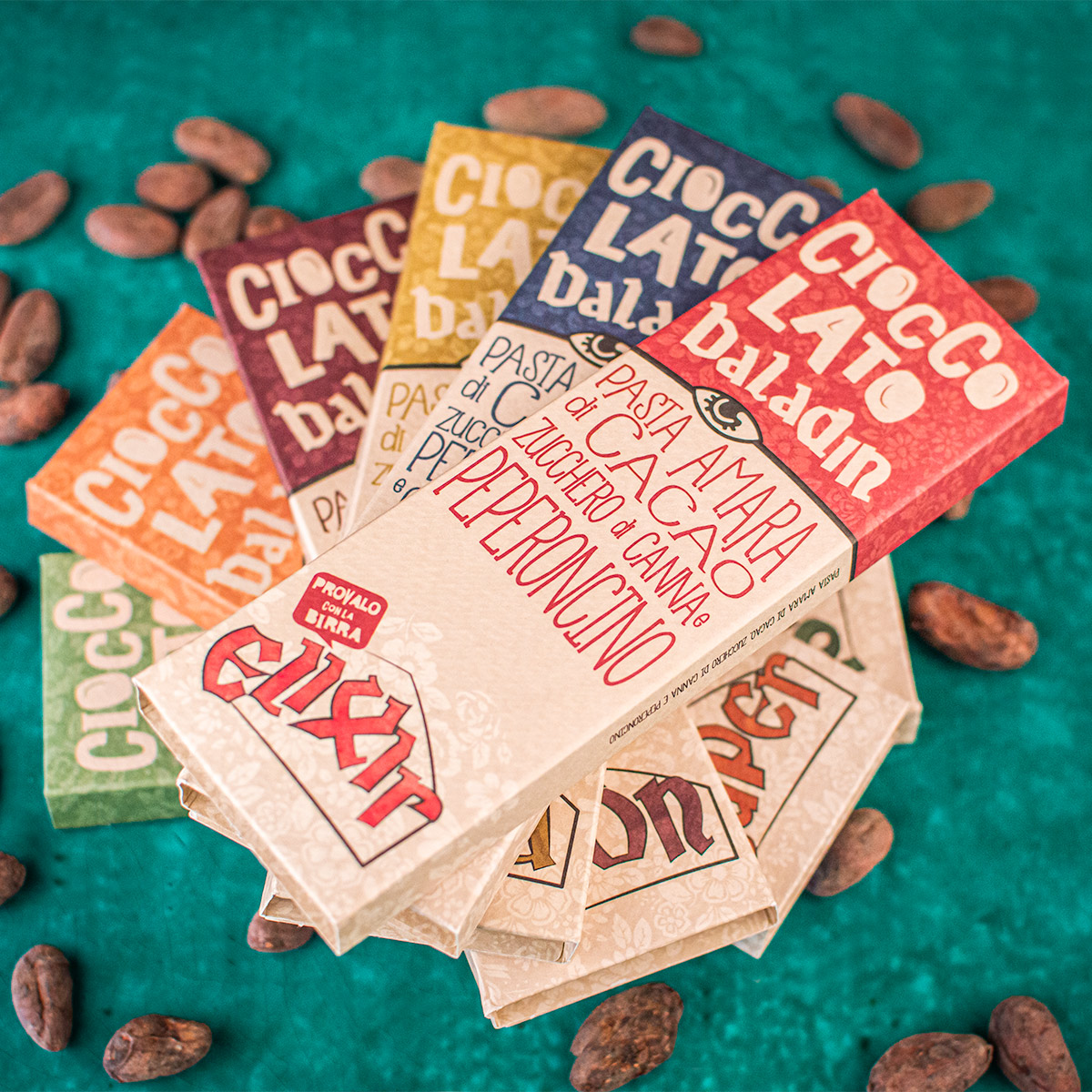 Abbina il cioccolato Baladin alle nostre sei birre classiche, magari come idea di aperitivo alternativo: Isaac, Wayan, Nora, Super, Leön e Elixir. Oppure gustale da sole: il cioccolato è buonissimo anche così!
