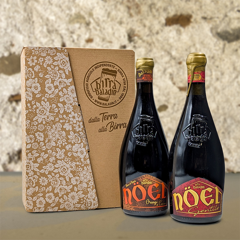 Preziosa confezione regalo, in cartone polionda finemente personalizzata con messaggi natalizi in stile Baladin, è il kit ideale per regalare le birre di Natale a chi ama gustarle.
