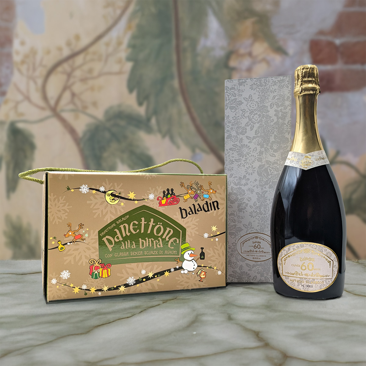 Un kit pensato per i migliori auguri di Natale e per iniziare al meglio il nuovo anno con la prestigiosa Bière de Champagne Metodo Classico 60 mesi e un panettone senza canditi Baladin.