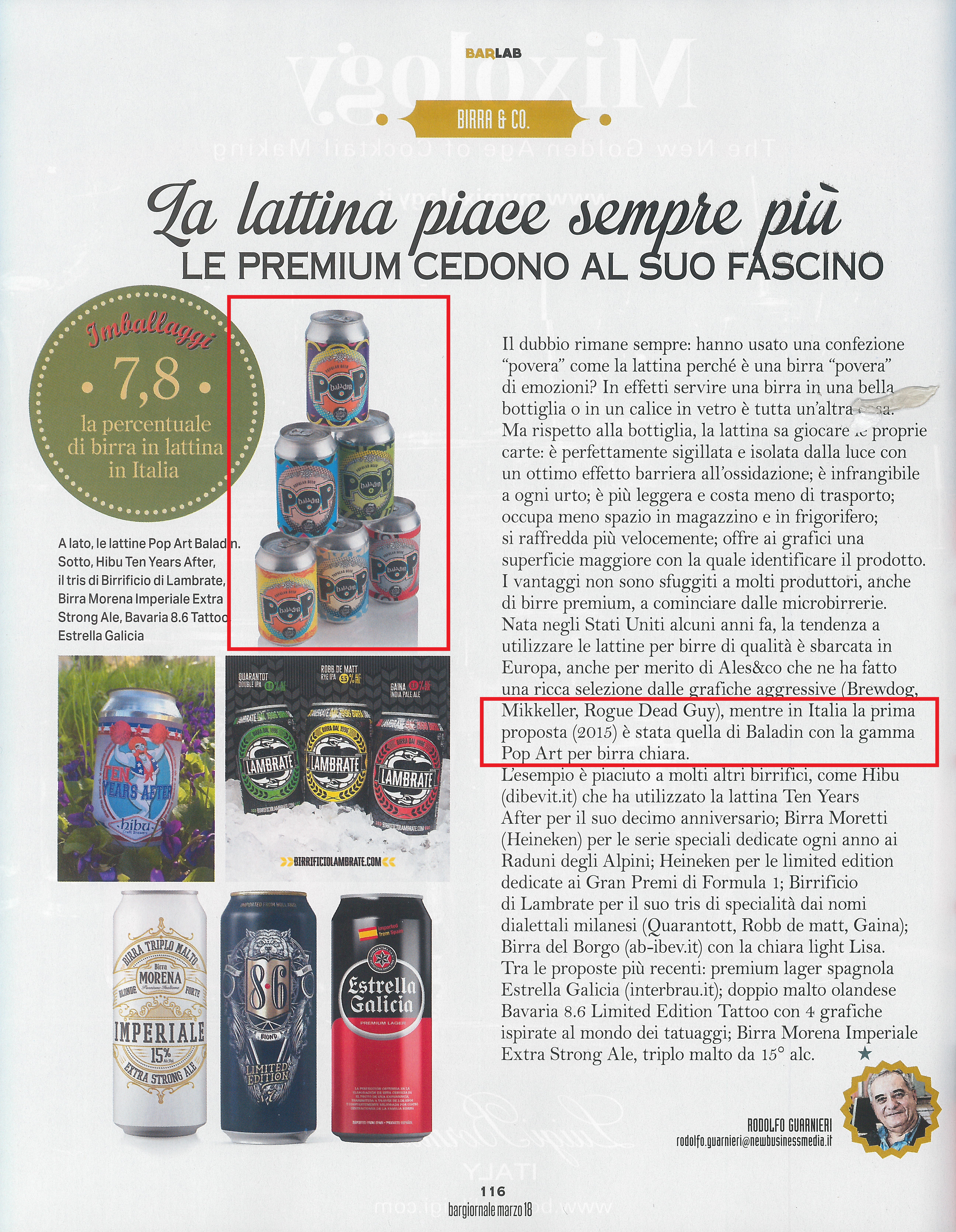 I vantaggi della lattina non sono sfuggiti a molti produttori, anche di birre premium, a cominciare dalle microbirrerie. L’articolo della rivista riporta una panoramica dei birrifici che hanno accolto, volontariamente la lattina, nella loro gamma di prodotti. La Baladin Pop Art, in Italia, è stata la prima…