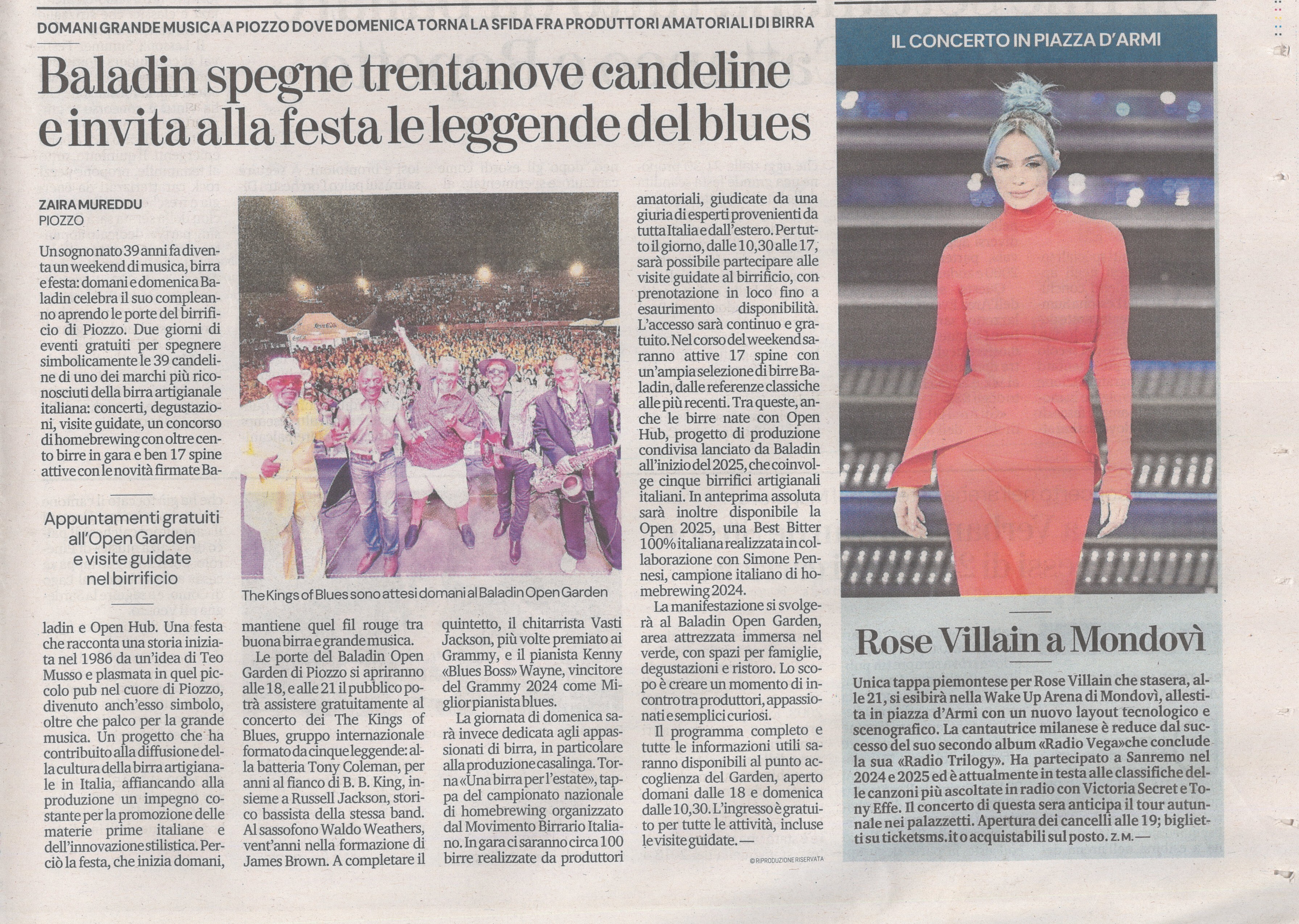 Grande musica a Piozzo! Baladin spegne 39 candeline e invita alla festa le leggende del blues. In concerto i "The Kings of Blues", gruppo internazionale formato da 5 leggende.